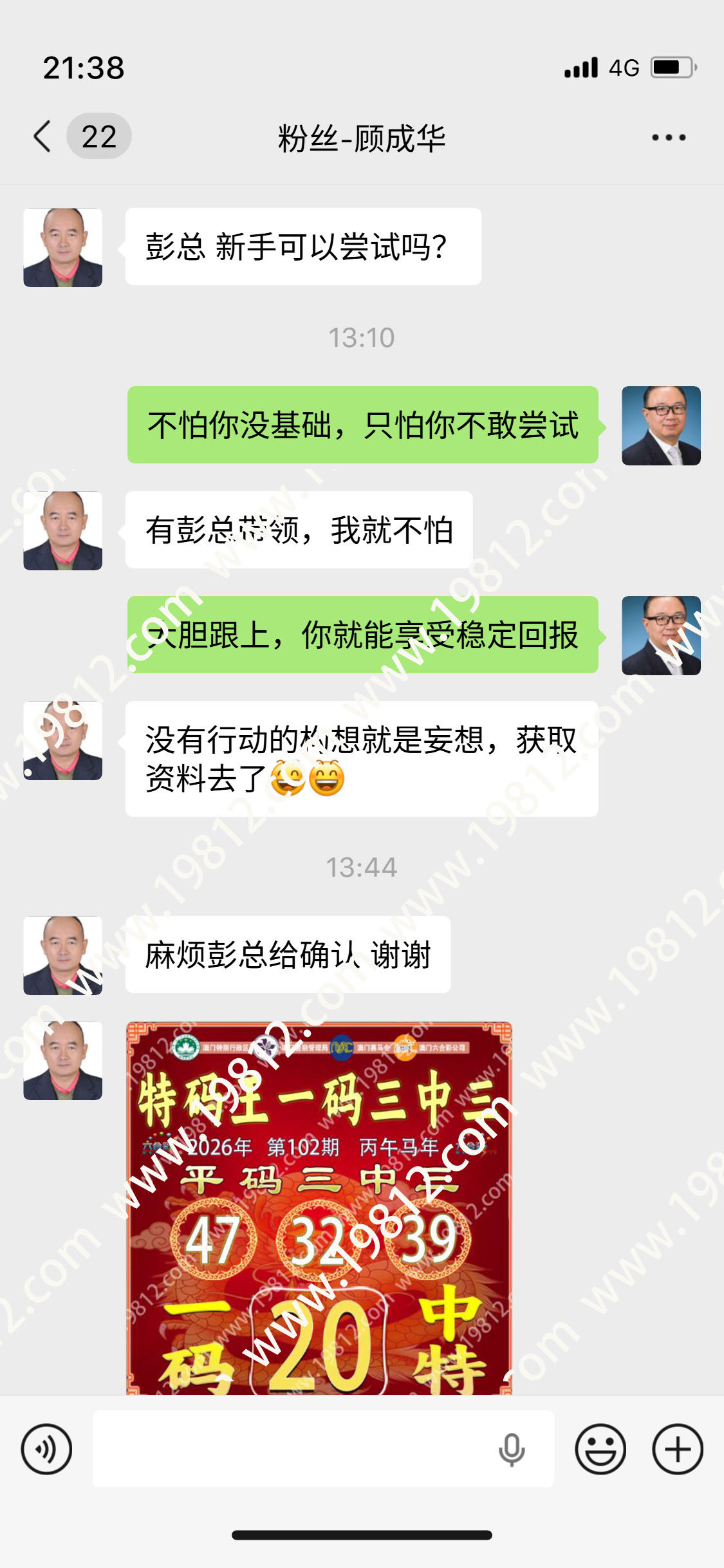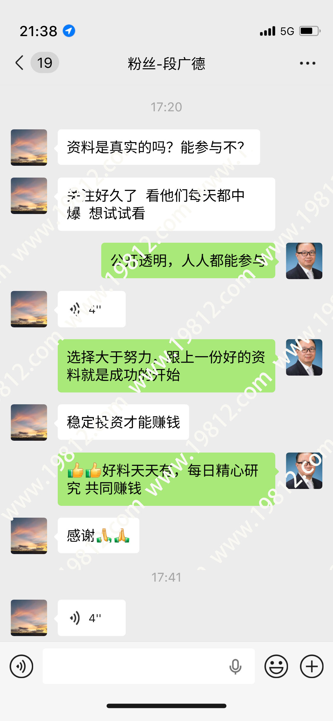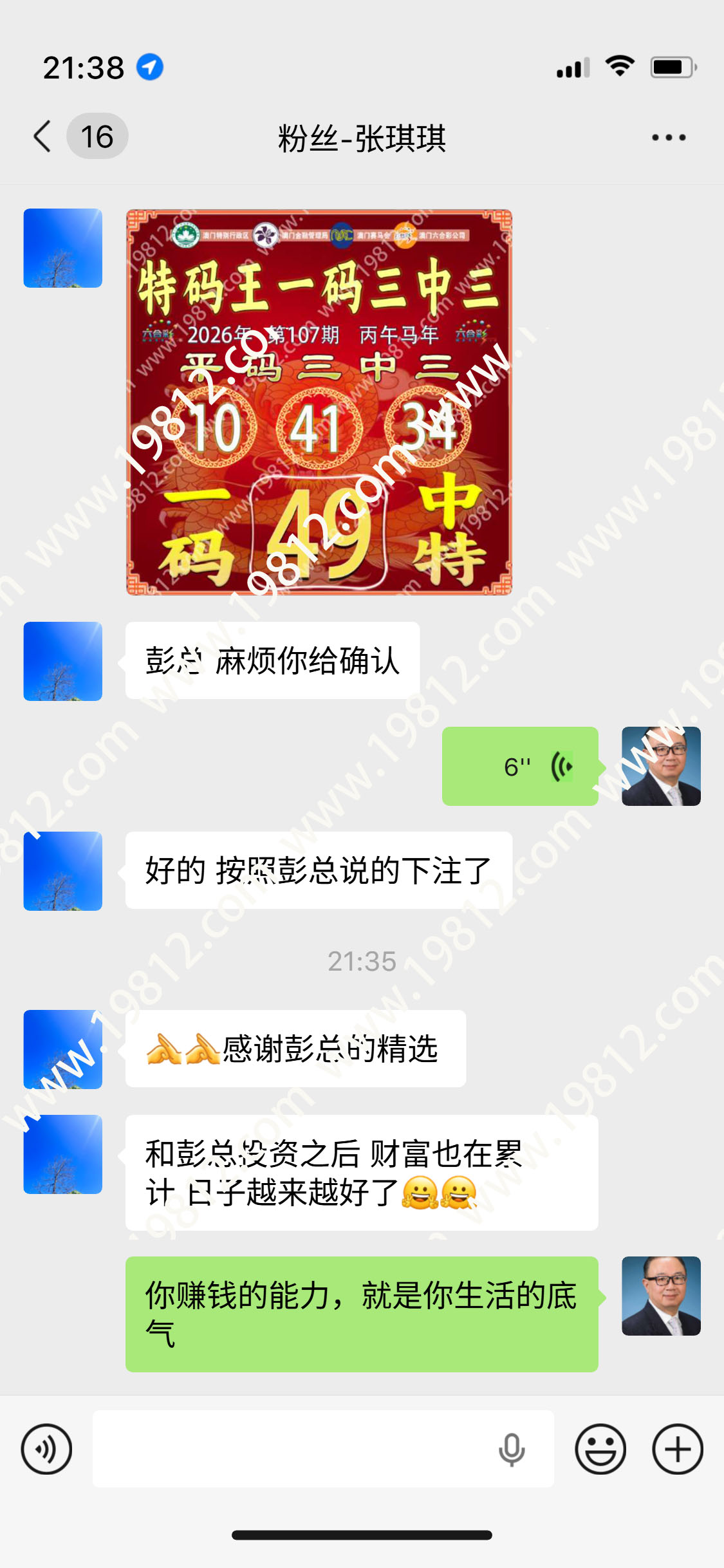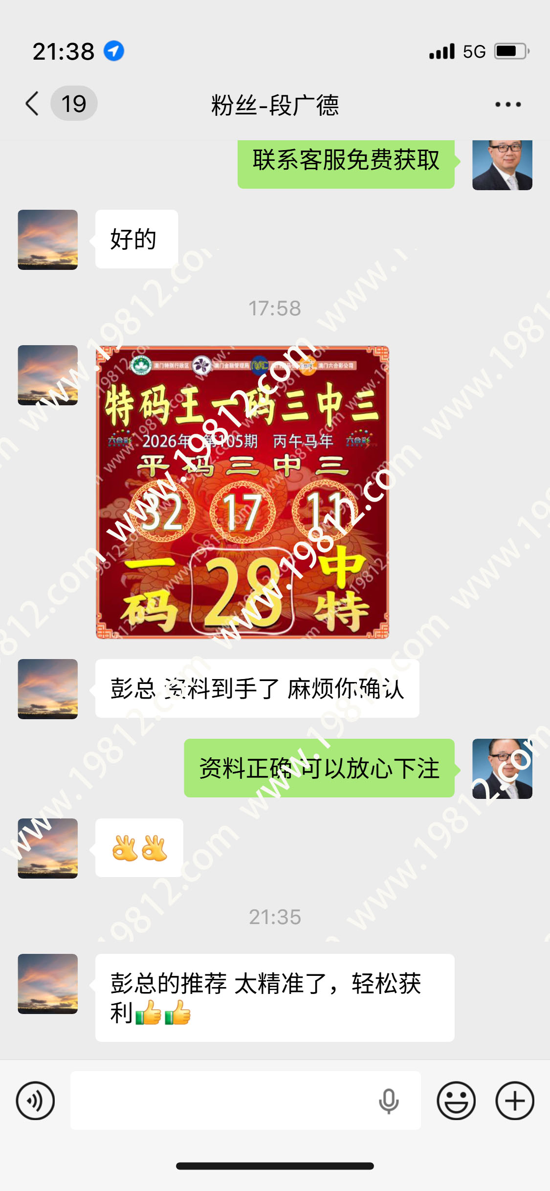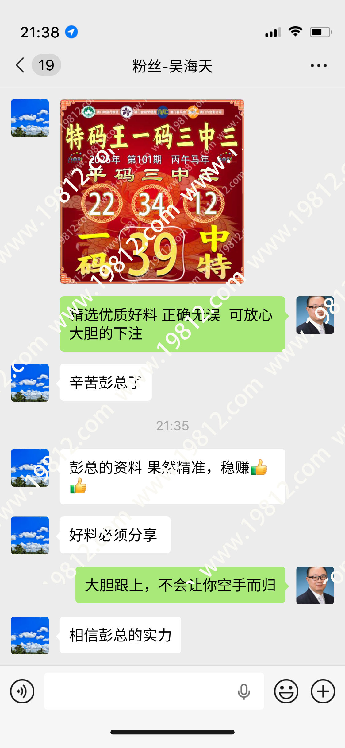本站从2019年试业开始到至今,谁说说,不准的话能开这么久吗?看哪些假网站三天两头关李就知道为啥了!如今国家出台新的网络监管非常严格,弄虚作假是逃脱不来法律的制裁的!【特码王一码三中三】作为顶尖资料站,已经确实颇有名气,就算不认识但听说过“特码王一码三中三”的朋友亦不在少数。我们不但没有弄虚作假,而且四年来每期都提前三五分钟公布号码,让千万彩民一起亲身见证我们的实力!我们的粉丝遍布全国及帮助众多彩民快速致富,堪称一个[百万富翁制造工厂]!请您放心添加微信,大胆合作!现在立即成为粉丝,马上领取资料!