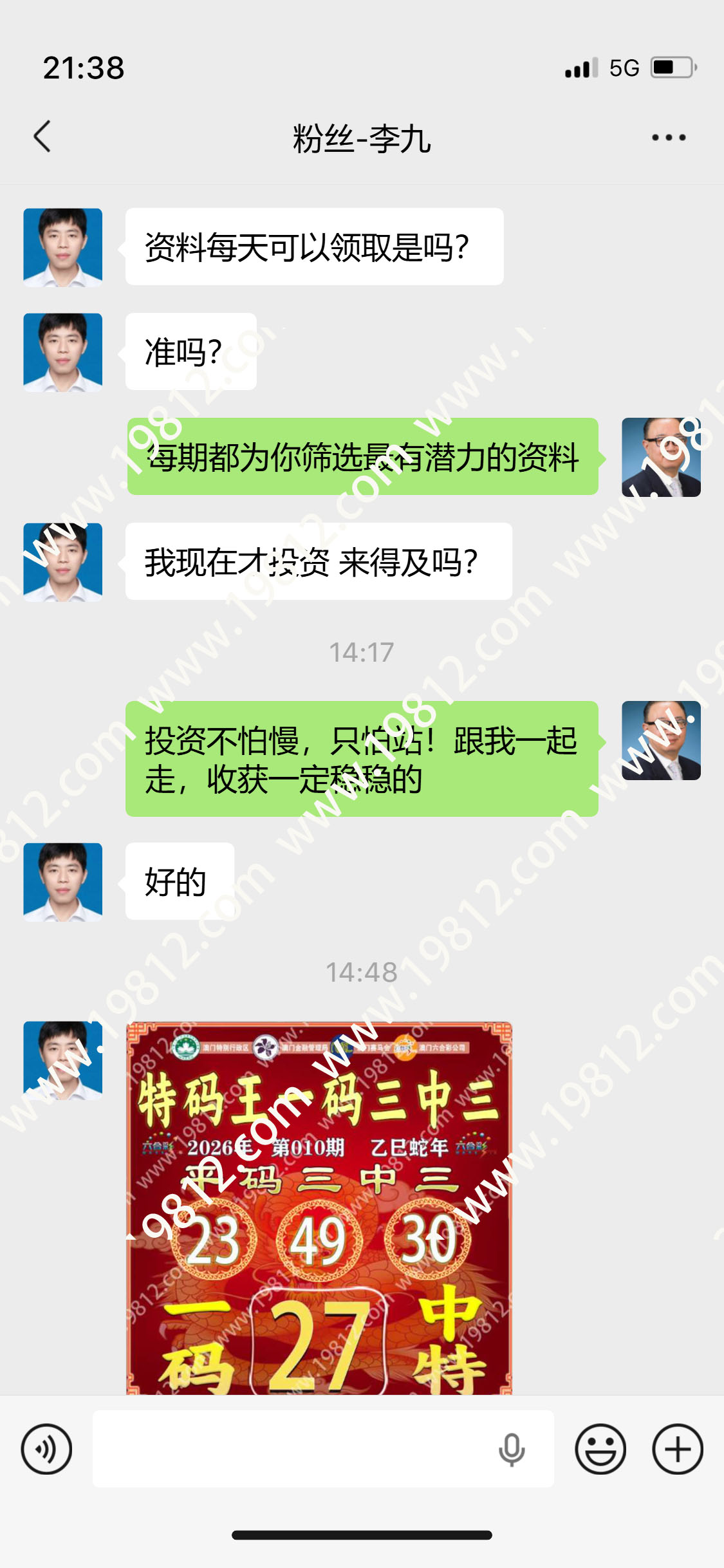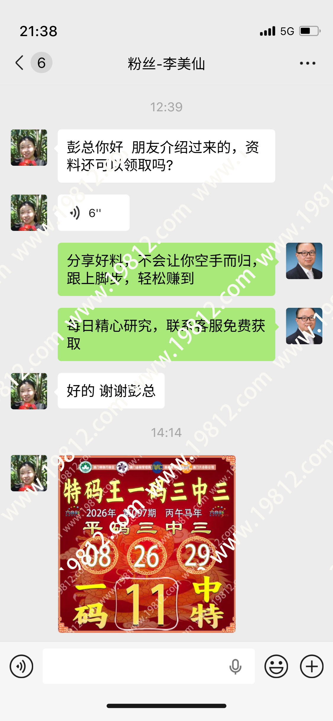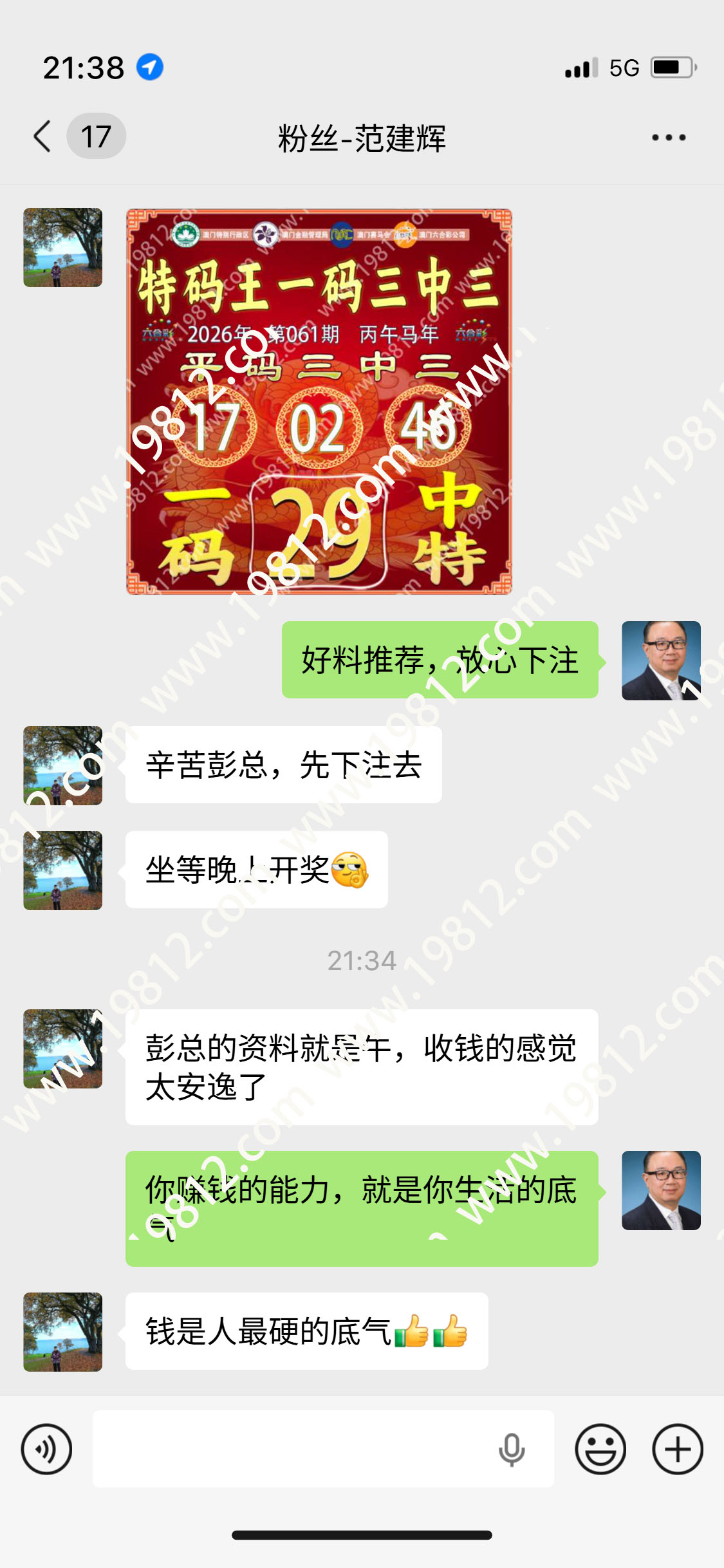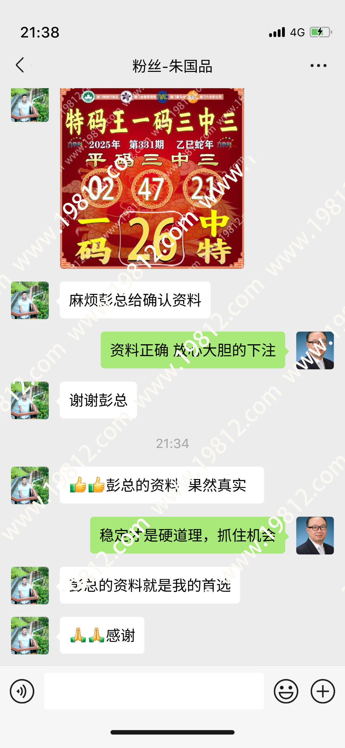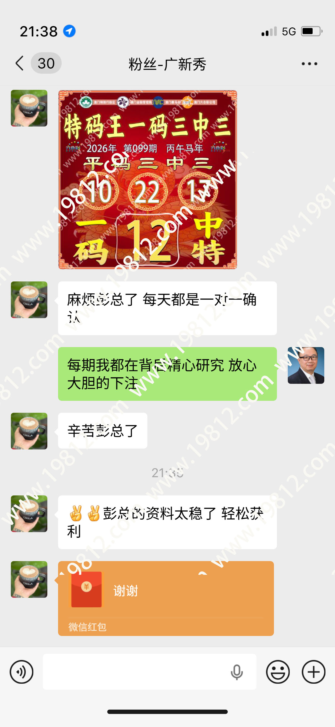 本站从2019年试业开始到至今,谁说说,不准的话能开这么久吗?看哪些假网站三天两头关李就知道为啥了!如今国家出台新的网络监管非常严格,弄虚作假是逃脱不来法律的制裁的!【特码王一码三中三】作为顶尖资料站,已经确实颇有名气,就算不认识但听说过“特码王一码三中三”的朋友亦不在少数。我们不但没有弄虚作假,而且四年来每期都提前三五分钟公布号码,让千万彩民一起亲身见证我们的实力!我们的粉丝遍布全国及帮助众多彩民快速致富,堪称一个[百万富翁制造工厂]!请您放心添加微信,大胆合作!现在立即成为粉丝,马上领取资料!
