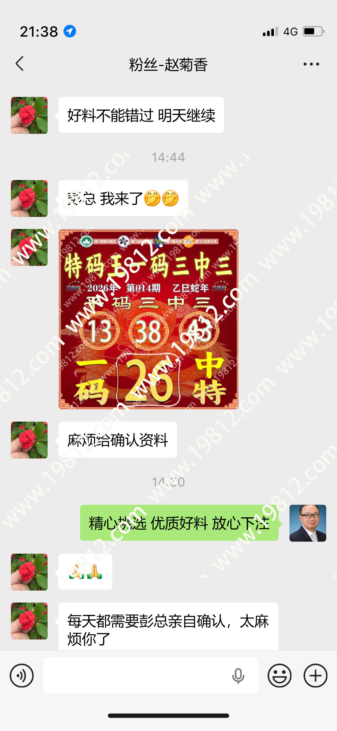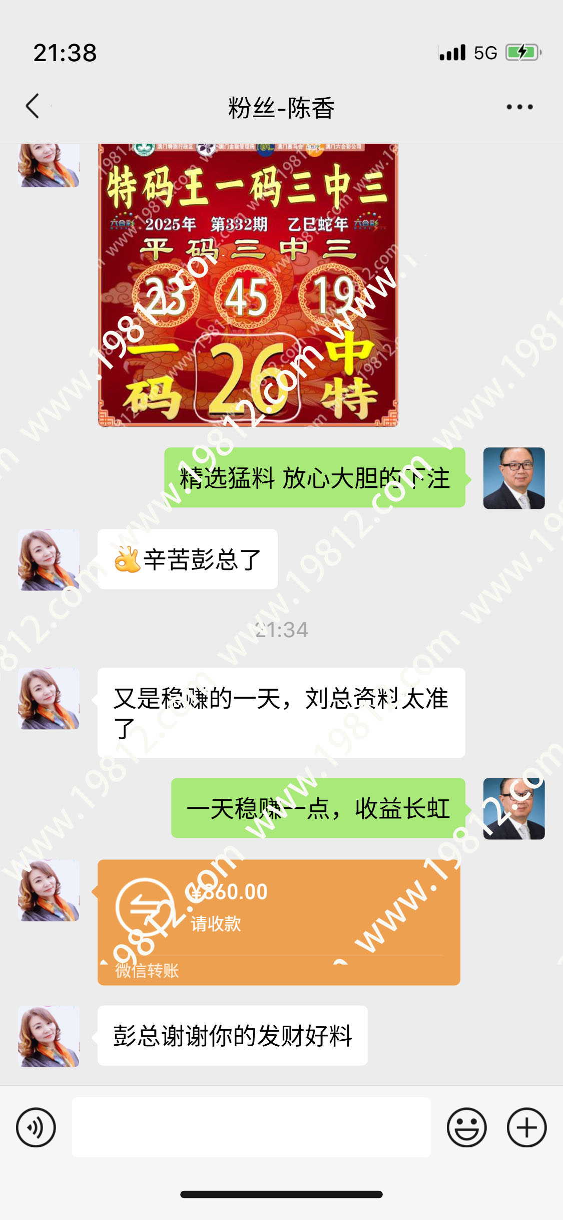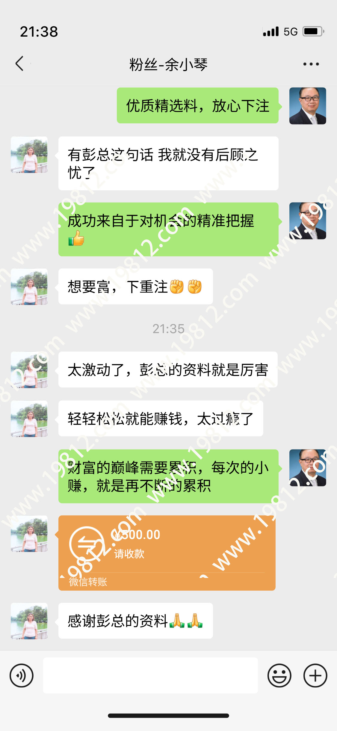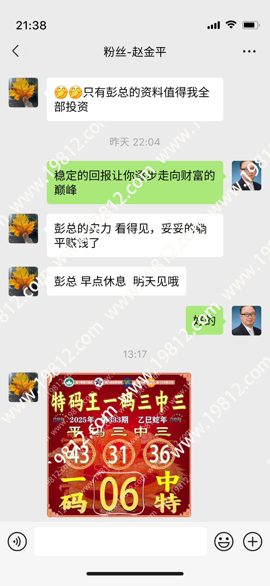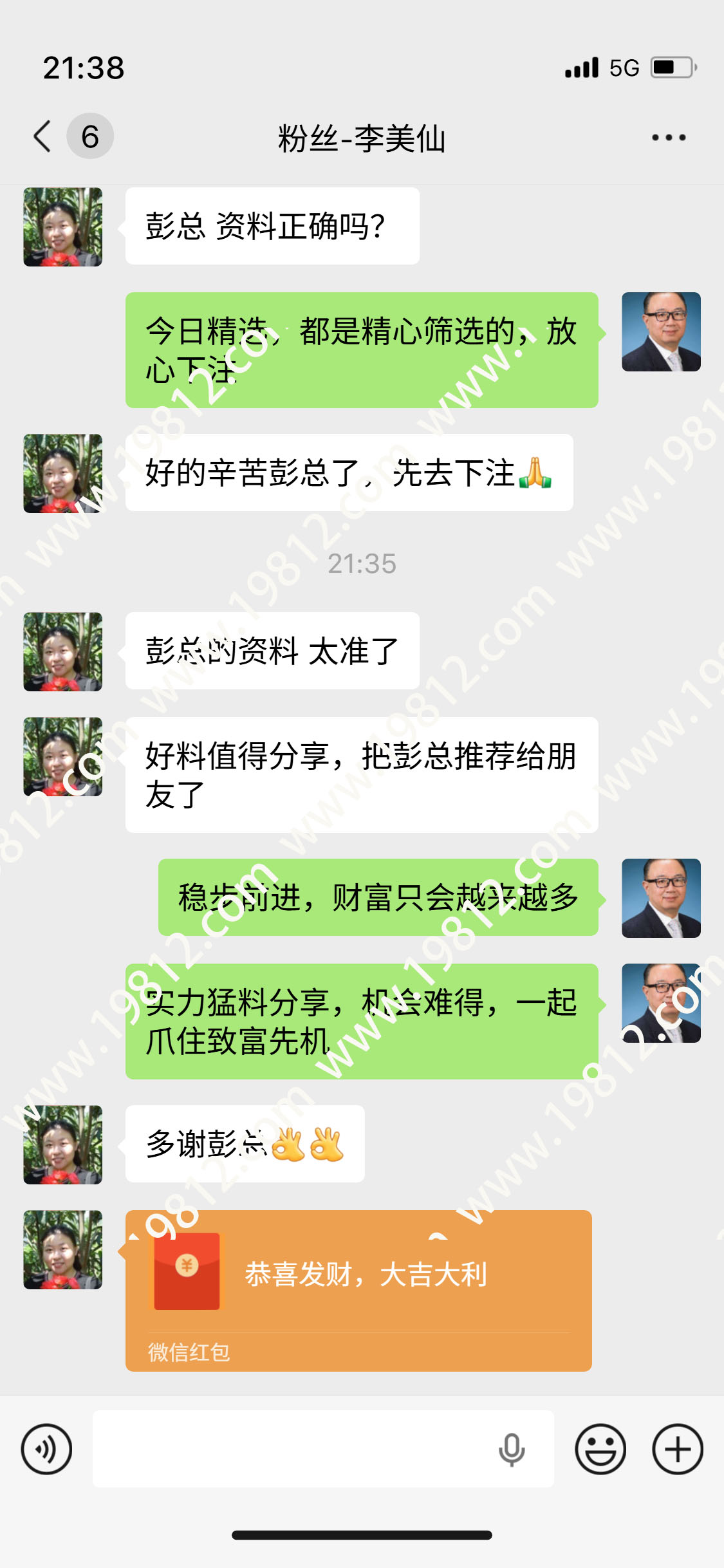本站从2019年试业开始到至今,谁说说,不准的话能开这么久吗?看哪些假网站三天两头关李就知道为啥了!如今国家出台新的网络监管非常严格,弄虚作假是逃脱不来法律的制裁的!【特码王一码三中三】作为顶尖资料站,已经确实颇有名气,就算不认识但听说过“特码王一码三中三”的朋友亦不在少数。我们不但没有弄虚作假,而且四年来每期都提前三五分钟公布号码,让千万彩民一起亲身见证我们的实力!我们的粉丝遍布全国及帮助众多彩民快速致富,堪称一个[百万富翁制造工厂]!请您放心添加微信,大胆合作!现在立即成为粉丝,马上领取资料!