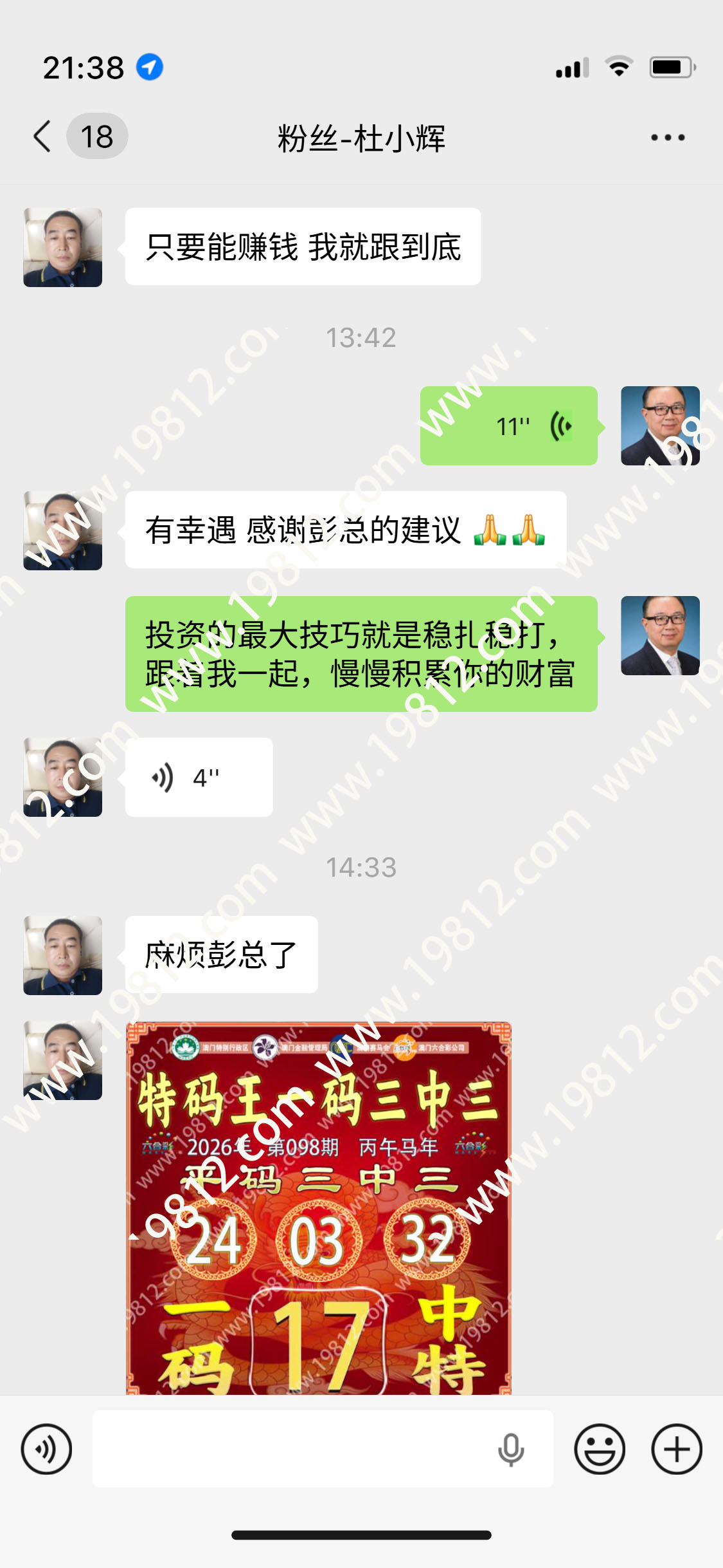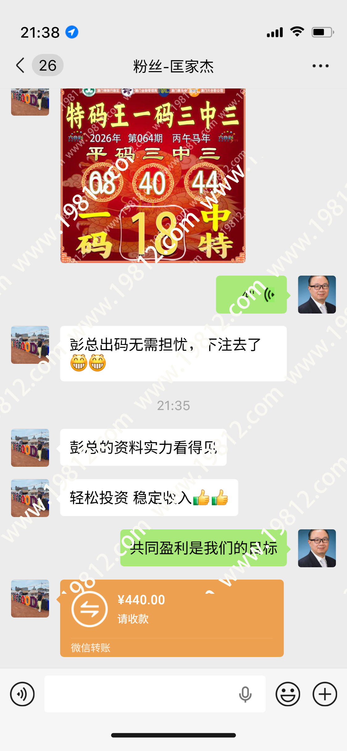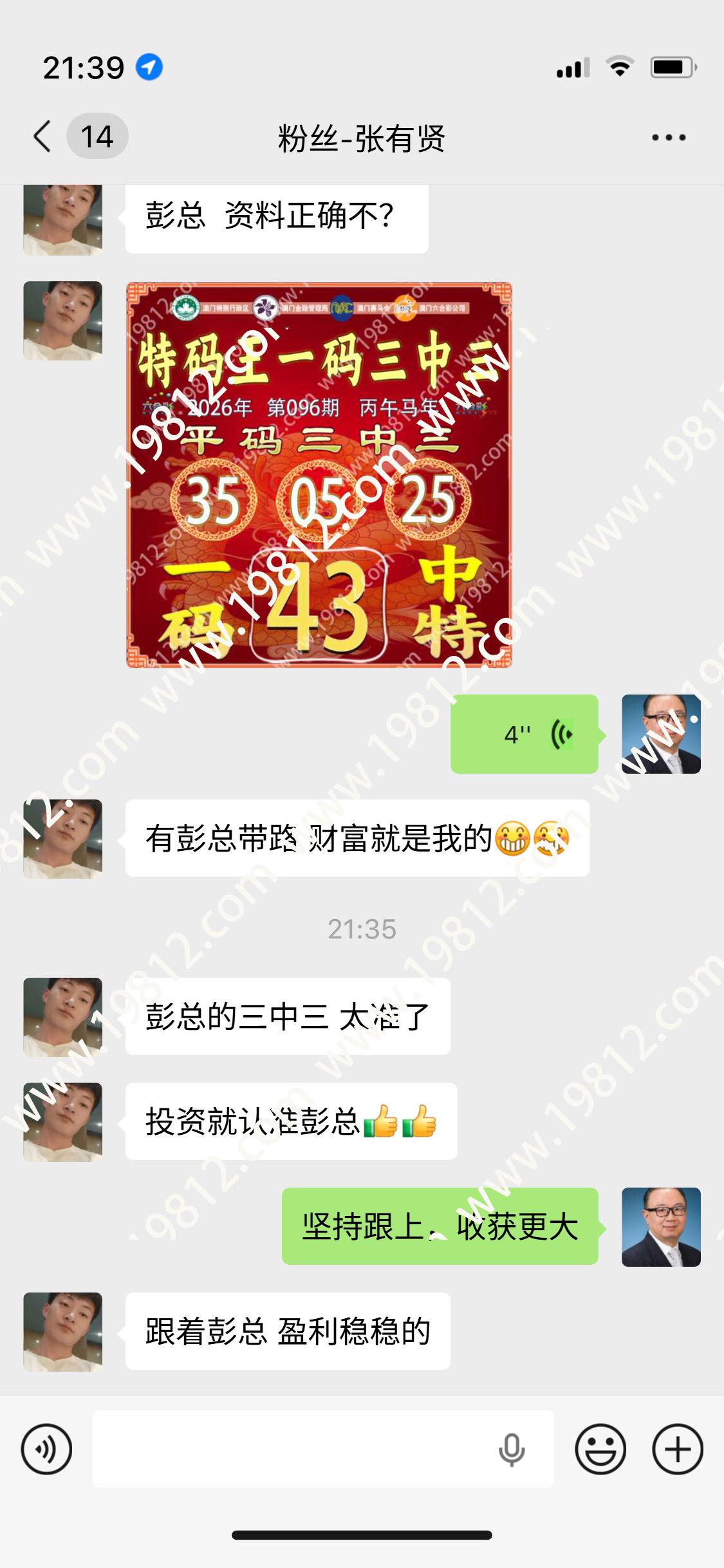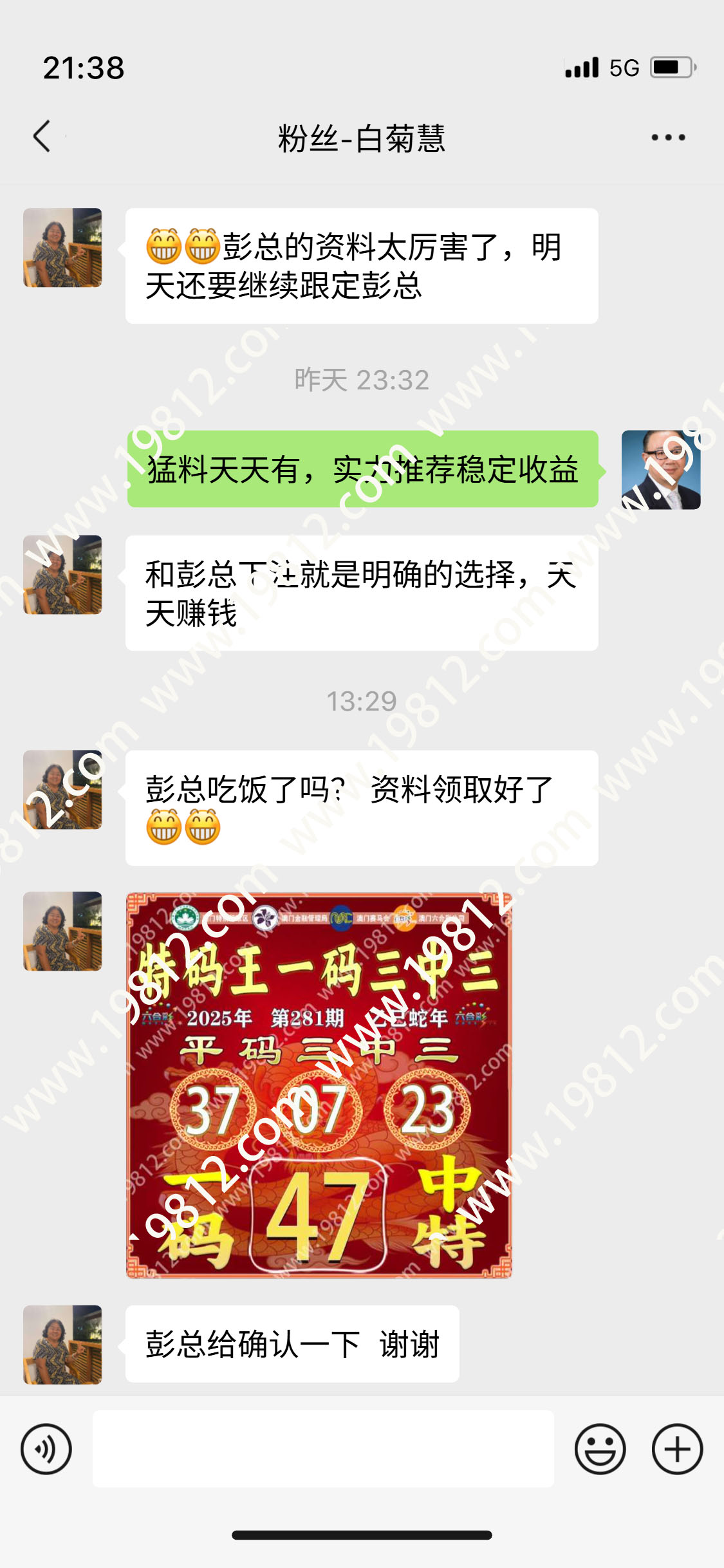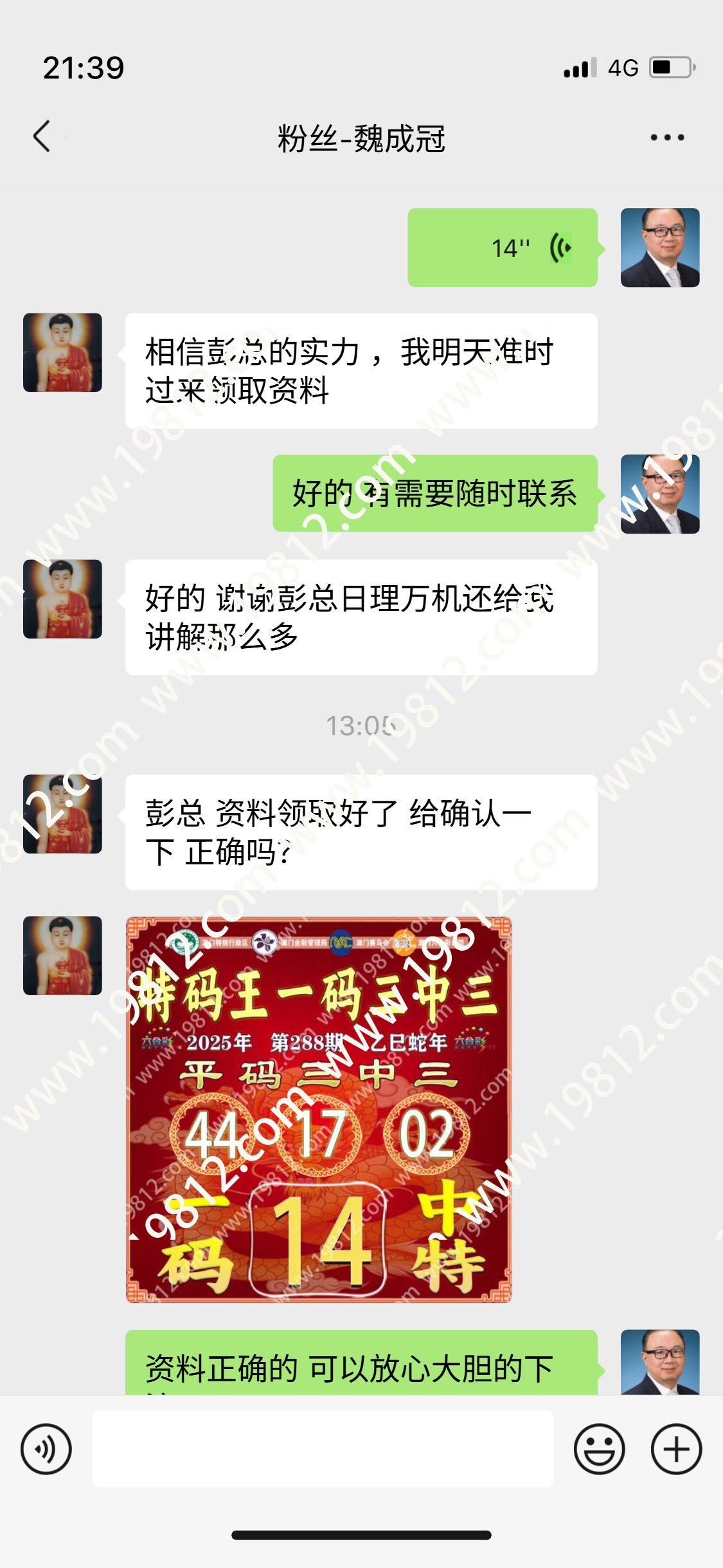 本站从2019年试业开始到至今,谁说说,不准的话能开这么久吗?看哪些假网站三天两头关李就知道为啥了!如今国家出台新的网络监管非常严格,弄虚作假是逃脱不来法律的制裁的!【特码王一码三中三】作为顶尖资料站,已经确实颇有名气,就算不认识但听说过“特码王一码三中三”的朋友亦不在少数。我们不但没有弄虚作假,而且四年来每期都提前三五分钟公布号码,让千万彩民一起亲身见证我们的实力!我们的粉丝遍布全国及帮助众多彩民快速致富,堪称一个[百万富翁制造工厂]!请您放心添加微信,大胆合作!现在立即成为粉丝,马上领取资料!