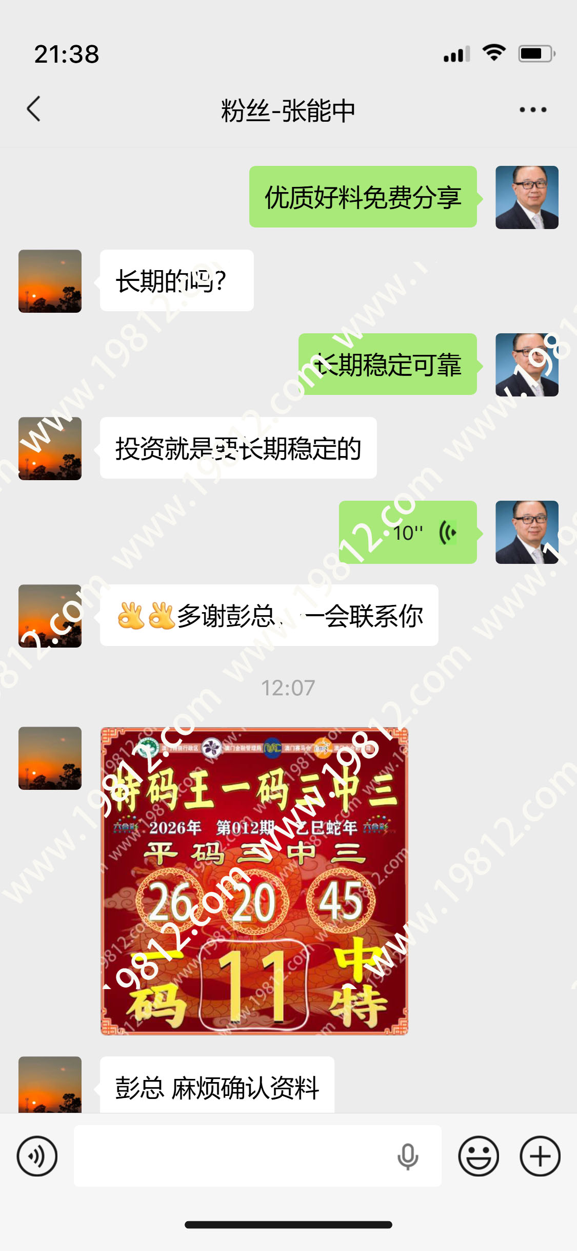 对不起,请您理解我们公司既然提供给您优质的服务,就需要严格的规章制度和办公流程才能有条不紊的经营。大陆彩民千千万,如果每人都直接免费领取资料,我们有限的人力将无从应付,而且无法保障对老粉丝的服务质量!我们曾尝试过提供直接免费领取资料,但结果令人大失所望!因为不设门槛就等于给了那些假料网站、幕后黑庄一个取料渠道,害得广大彩民反遭蒙骗和伤害!彩民朋友们,希望你们谅解!毕竟付出才有回报!特码王一码三中三是公正公开透明的,只要您添加微信,那么您得到的回报将是千百倍的财富!