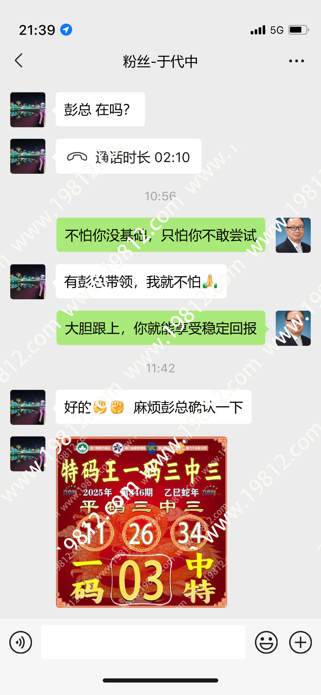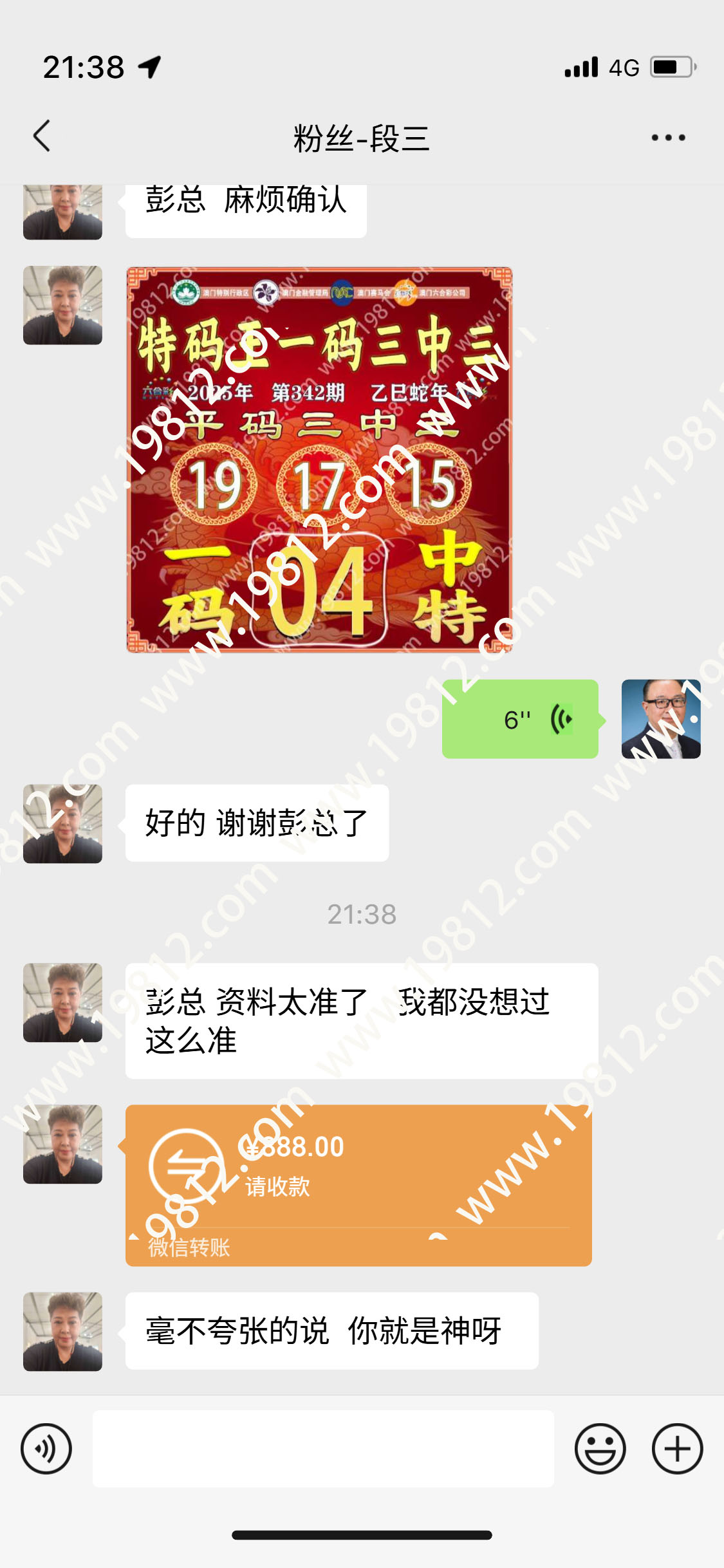 本站从2019年试业开始到至今,谁说说,不准的话能开这么久吗?看哪些假网站三天两头关李就知道为啥了!如今国家出台新的网络监管非常严格,弄虚作假是逃脱不来法律的制裁的!【特码王一码三中三】作为顶尖资料站,已经确实颇有名气,就算不认识但听说过“特码王一码三中三”的朋友亦不在少数。我们不但没有弄虚作假,而且四年来每期都提前三五分钟公布号码,让千万彩民一起亲身见证我们的实力!我们的粉丝遍布全国及帮助众多彩民快速致富,堪称一个[百万富翁制造工厂]!请您放心添加微信,大胆合作!现在立即成为粉丝,马上领取资料!